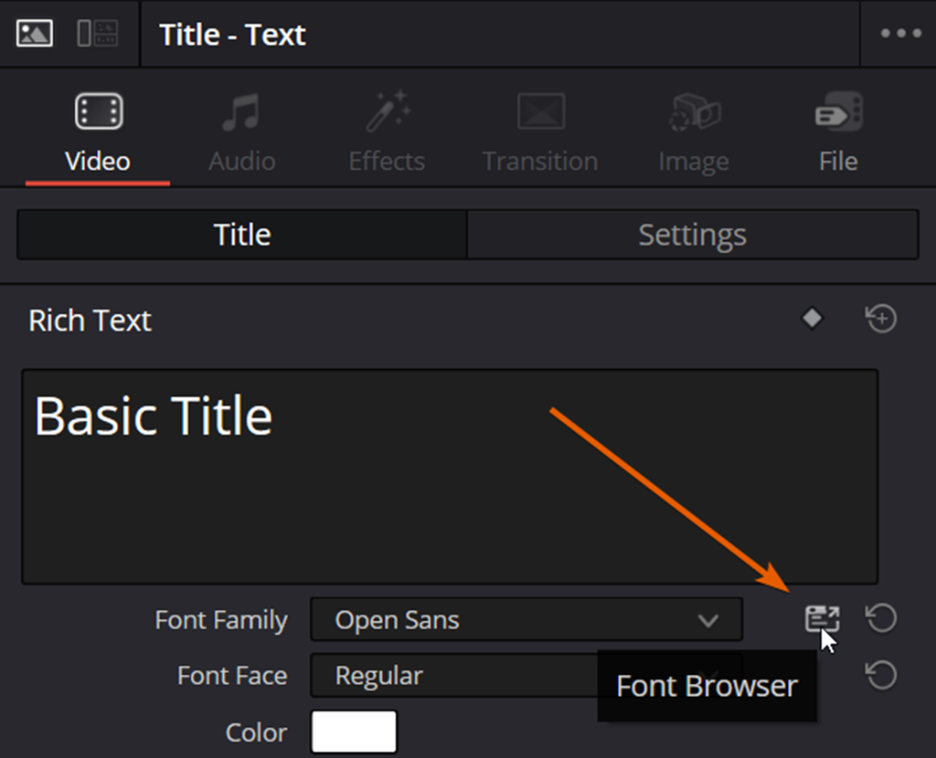 Beyond simple dropdown improvements, Resolve 21 introduces a dedicated Font Browser. This is a standalone tool designed for deep dives into your typography library, accessible via a new icon located next to the font selection menu.
