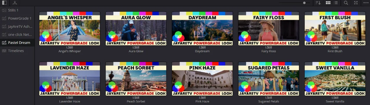 The Pastel Dream Powergrades collection is a toolkit for the colorist and filmmaker using DaVinci Resolve. This suite of 10 Powergrades provides the foundation for creating sophisticated, dream-like color palettes with unparalleled precision and artistry.